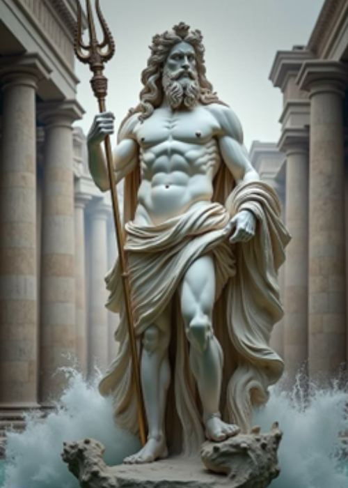 پوزیدون (Poseidon): خدای دریا و زلزلهها. در اودیسه او دشمن اولیس (ادیسهس) است و سفر او را به خانه طولانیتر میکند.