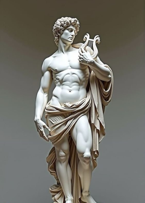 آپولون (Apollo): خدای خورشید، موسیقی و پیشگویی. معبد دلفی و پیشگوییهای او در بسیاری از متون باستانی ذکر شدهاند.